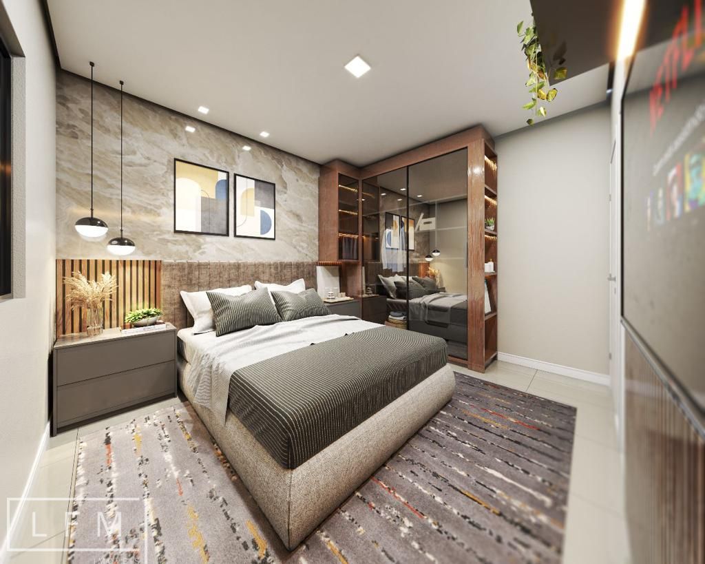 UMA SUÍTE MAIS DOIS DORMITÓRIOS, ÁREA DE SERVIÇO, SALA, COZINHA, ÁREA GORMET INTEGRADAS COM CHURRASQUEIRA.