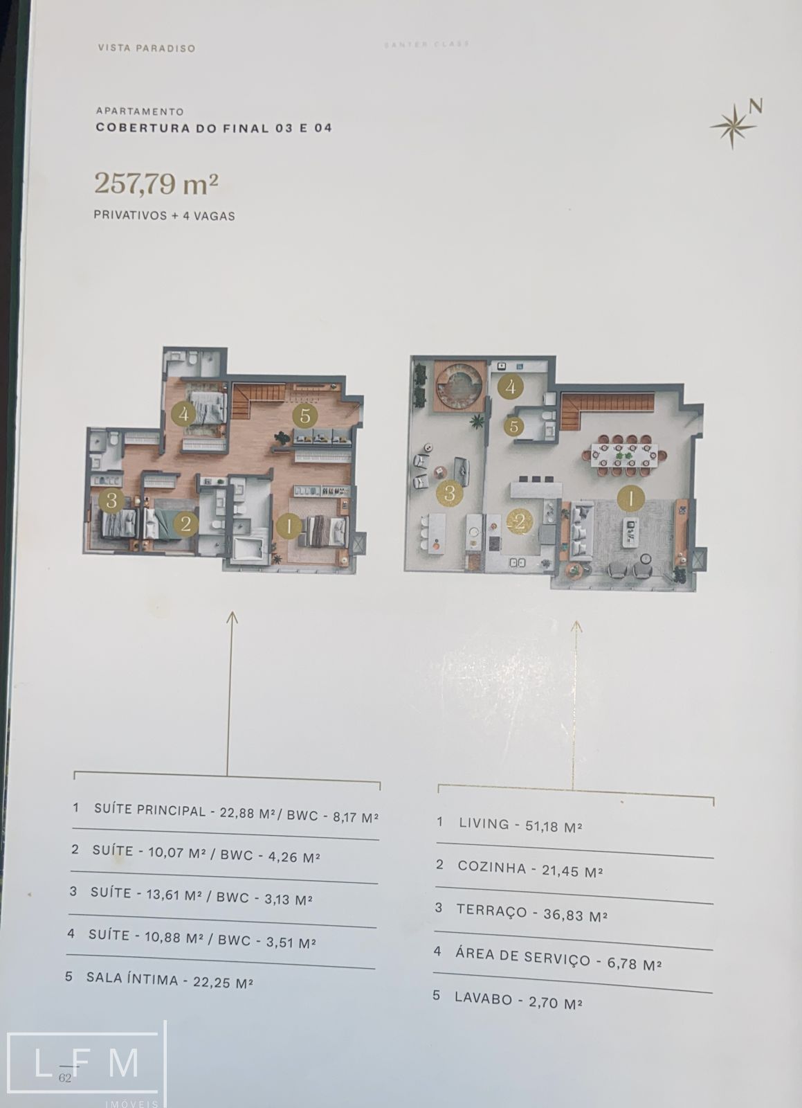 cobertura duplex com 257 metros quadrados, com 04 suítes, sala intima, living, cozinha, terreco, área de serviço, lavabo, todos os cômodos muito espaçosos e amplos.
